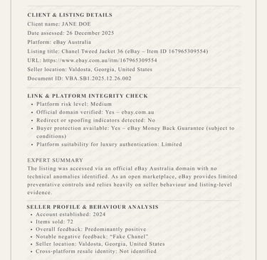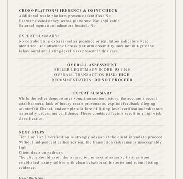 Luxury brands assessed are not responsible for, bound by, or required to recognise any findings, reports, or certificates issued by Verified By Anna, and may not honour such documentation.