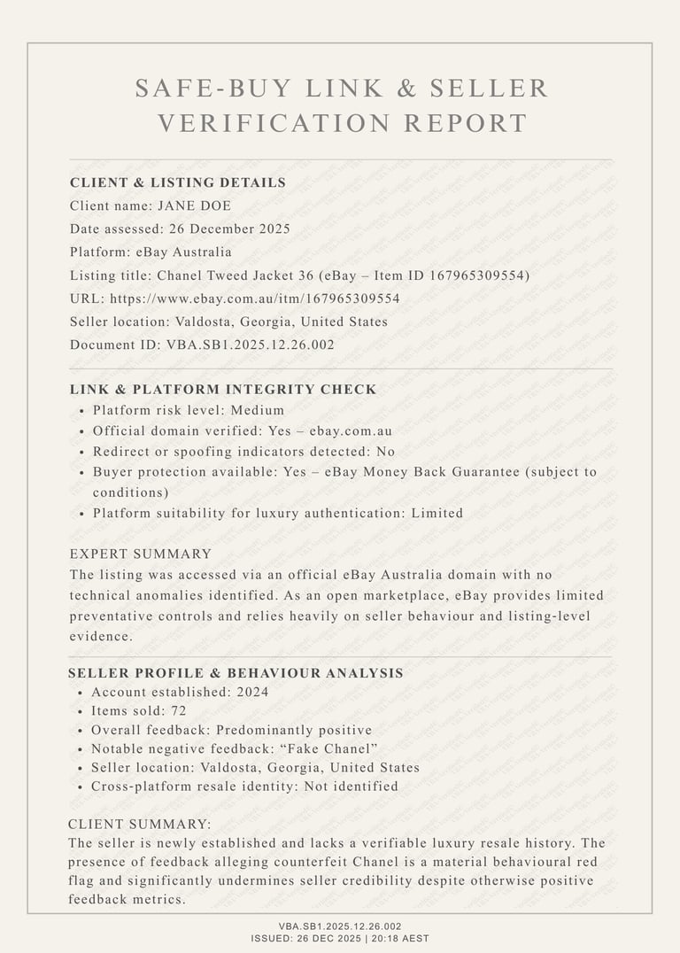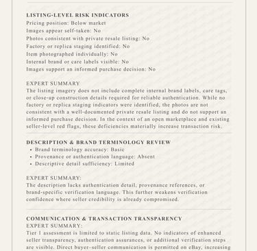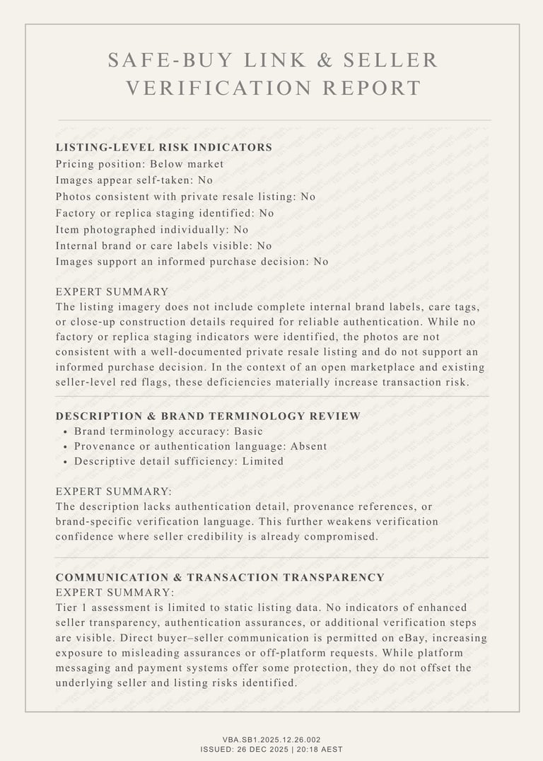Verified By Anna is an independent authentication and resale risk assessment service.